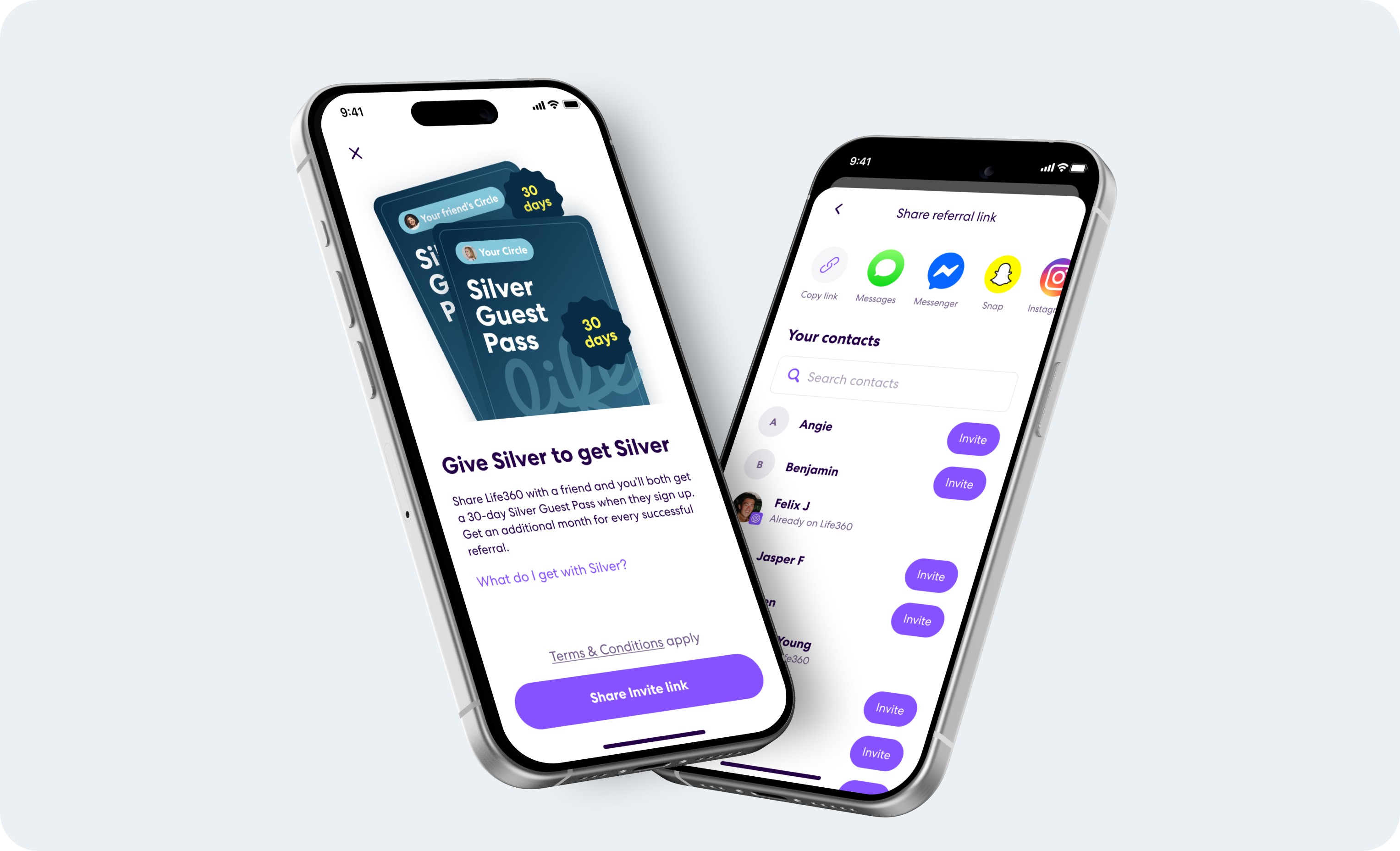Design from scratch the referral experience in Life360, offering a free month of Silver membership for both senders and receivers.